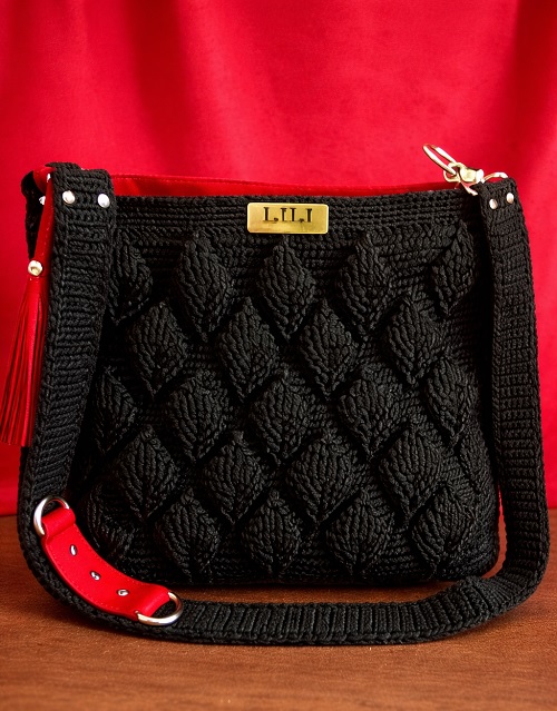 8. 3D Crcohet Black Leaf Bag
