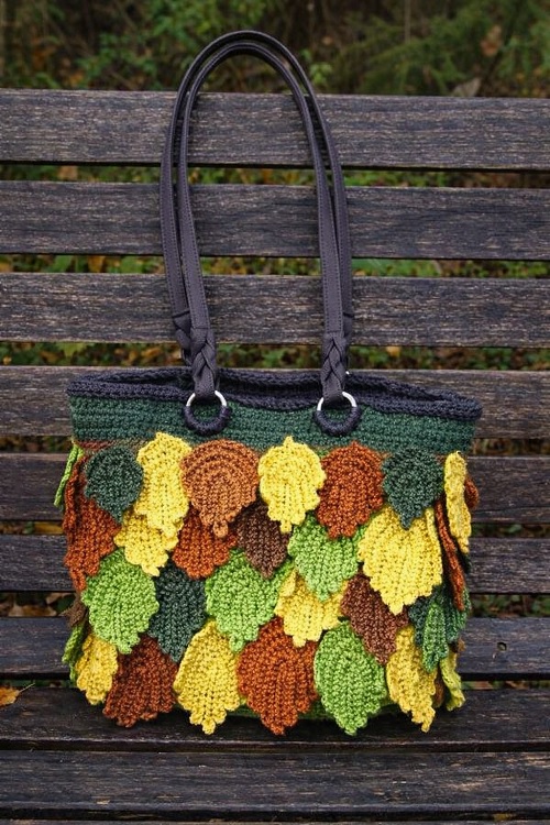 Got bored with carrying that same old bag, then have a look at this fall leaf bag by Faith Wisest. You can use warm colors to give it a more cheerful look.