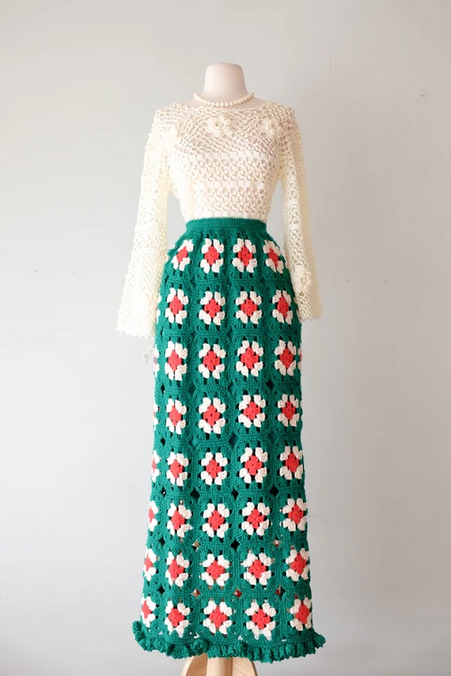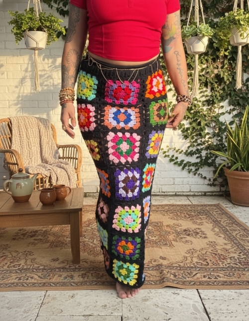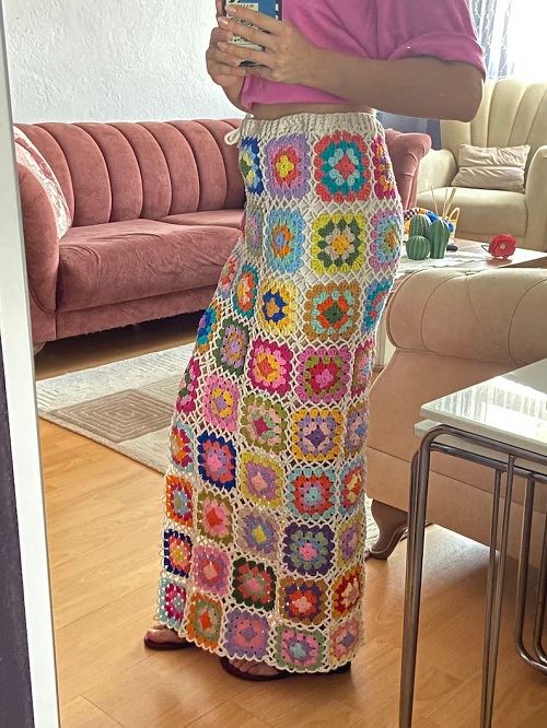 This long skirt from Marie Made It is just what you need to slay at the next family get-together. You can take any colors to make the granny square more vibrant.