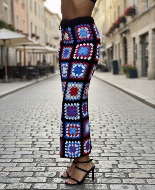 Love the floral granny squares in this Christmas-themed skirt? Check out its paid pattern at shopxtabay. It is a fantastic option for winter wear. You can customize the colors and length to match any holiday, festival, or special event.