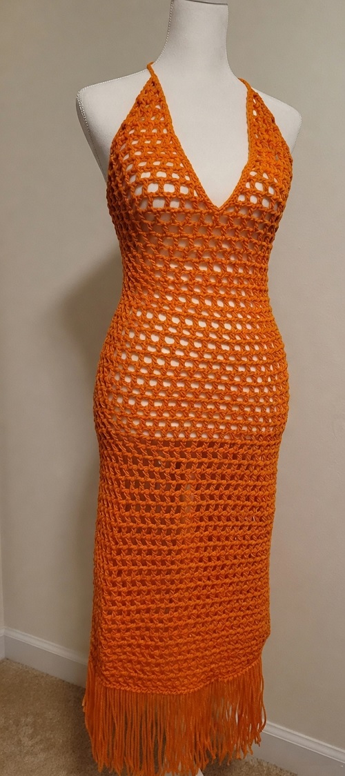 Look at this stunning mesh dress from Zx Crochets. Try to use the exact number of gauges and stitches to get the same one for yourself. You can customize the color of your yarn as per your needs.