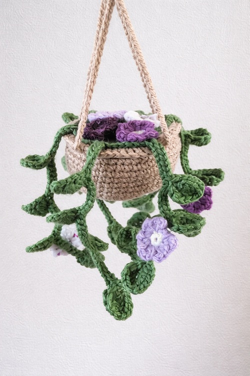 Begin your crocheting journey with this purple blooming vining plant from Make It Yourself by Papari. It’s easy to arrange near windows, bookshelves, or on blank living walls.