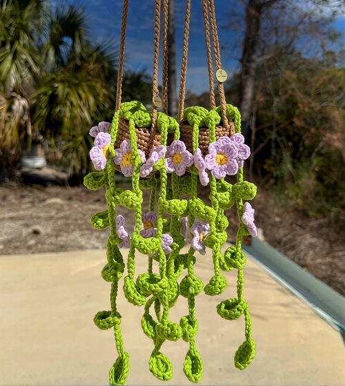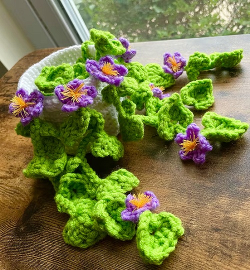 Love to decorate your apartment with handmade blooming leafy vines? Then try these Crochet Purple Flowering Vine Free Patterns today!