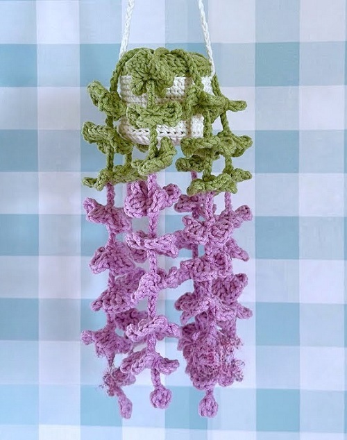 Don’t you think this hanging vining plant looks perfect on your boring wall? If yes, then why not make it just like Laura Wilson Designs? You will only need dk yarn, a 3mm crochet hook, stitch markers, scissors, and stuffing.
