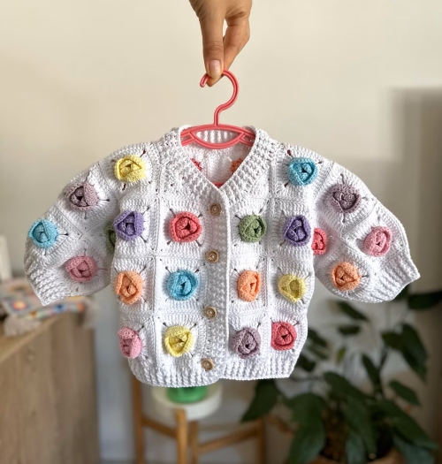 Make your kiddo’s birthday memorable with this rose cardigan available at Etsy. The 3D rose motifs in pastel colors make it the most desirable one on this list.