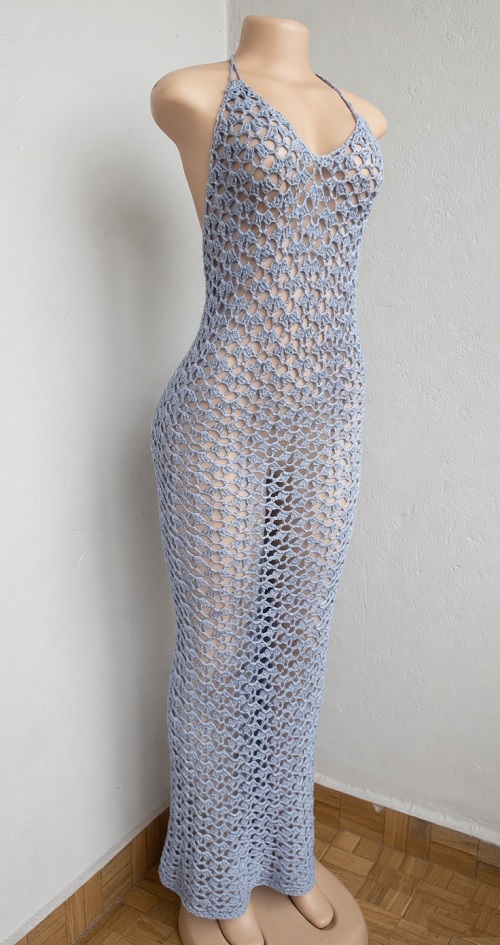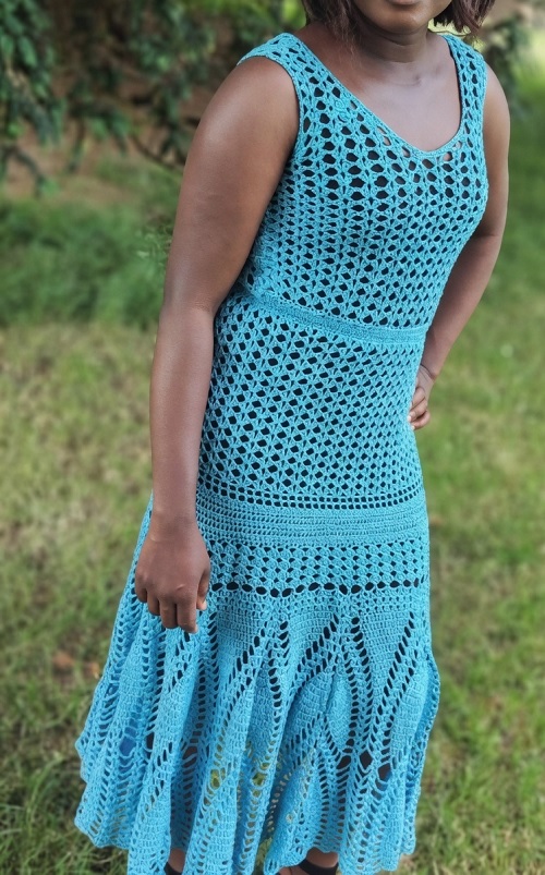 With this maxi outfit, no one can stop you from becoming a hot topic at beach parties. It has a flattering V-neck with an open back and mesh design. If you don’t want its revealing nature, Shyler Crochets suggests lining the dress with a fabric.