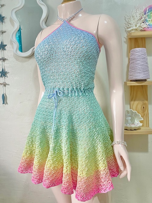 As mentioned by Myzayi Yunus, you must have the basic knowledge of dc, sc, and sl st stitches to create this rastafarian fringe dress. It’s only suitable for the beach and poolside parties, not for usual events.