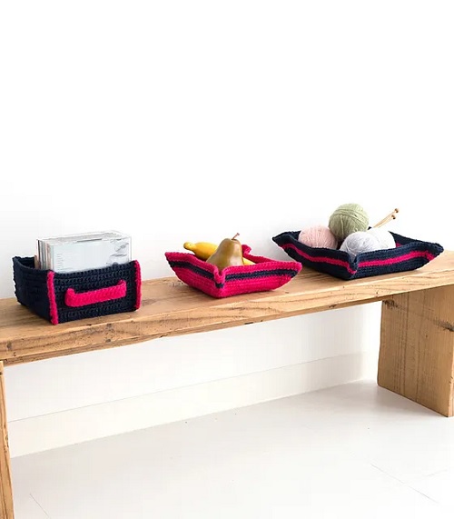 Want to show off your creativity and crochet craftsmanship among guests? This dual-toned trinity tray set by Gosyo is the perfect project for this purpose.