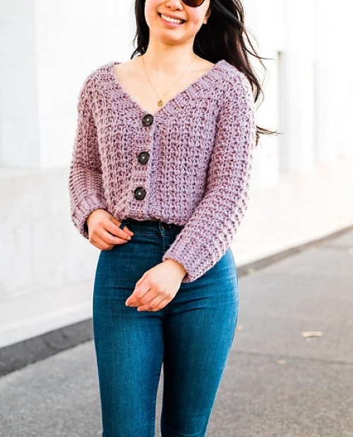 Learn how to crochet a cardigan in V-neck by Crystal Marin. It’s a great pattern for someone who is looking for a comfy and simple design.