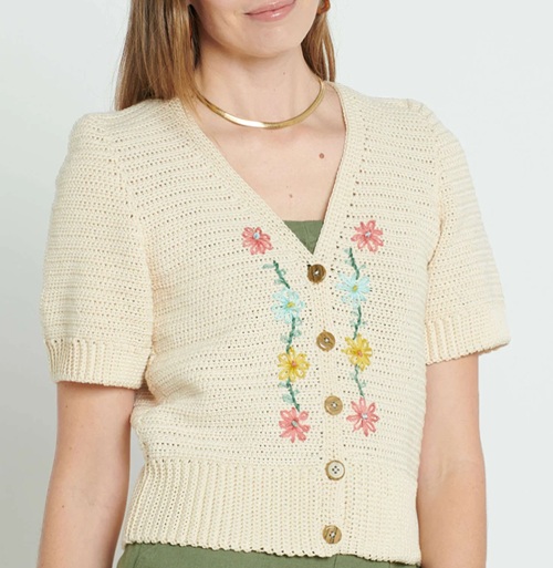 4. Crochet Floral Embroidered V-Neck Cardigan