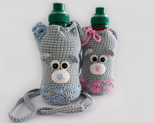 Your kiddo will definitely love to carry this bear-faced bottle cozy. Crazy Patterns crocheted this customized accessory with dc, sl st, sc, ch, hdc, and st stitches.