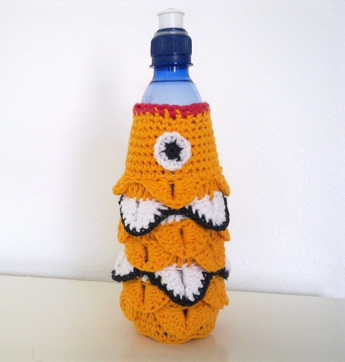 You can also have this multi-colored crocheted sipper cover from Menmy Hook. Its pattern is worked with two strands of yarn held together. The best part? You can use scrap yarn in this project.