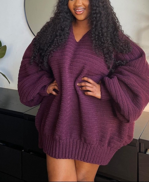 Stay cozy and comfy during your baby shower with this oversized outfit. Make sure to wear leggings or something else to better protect against chilly weather. Mihankushea is behind this dress.