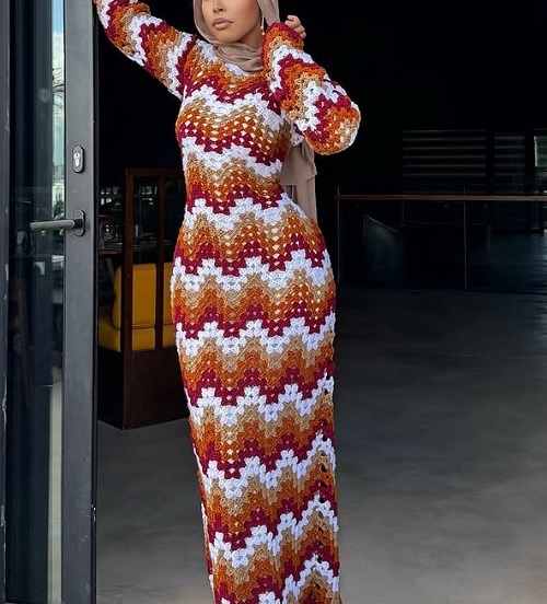 With the colorful zig-zag chevron pattern, this dress will surely become your favorite winter wear. Marion Crochets has designed this clothing for brunch, date nights, parties, and other special occasions.