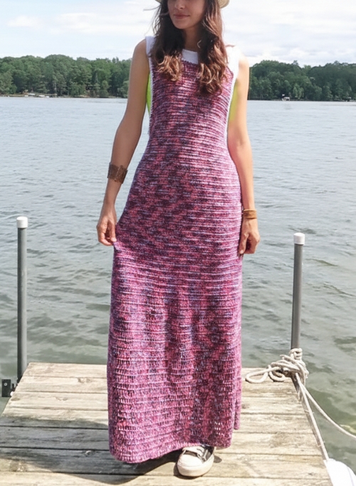 Try your hand at this stylish crochet maxi pattern from Yarnspirations. All you need to do is use the sc, dc2tog, and dc techniques with minimal shaping.