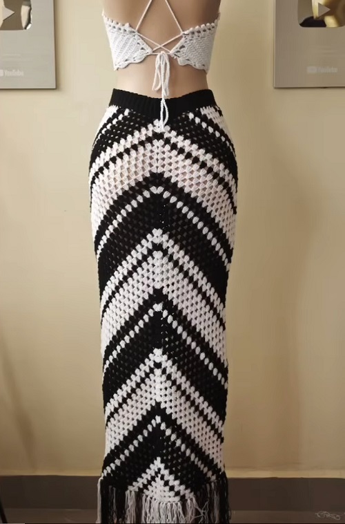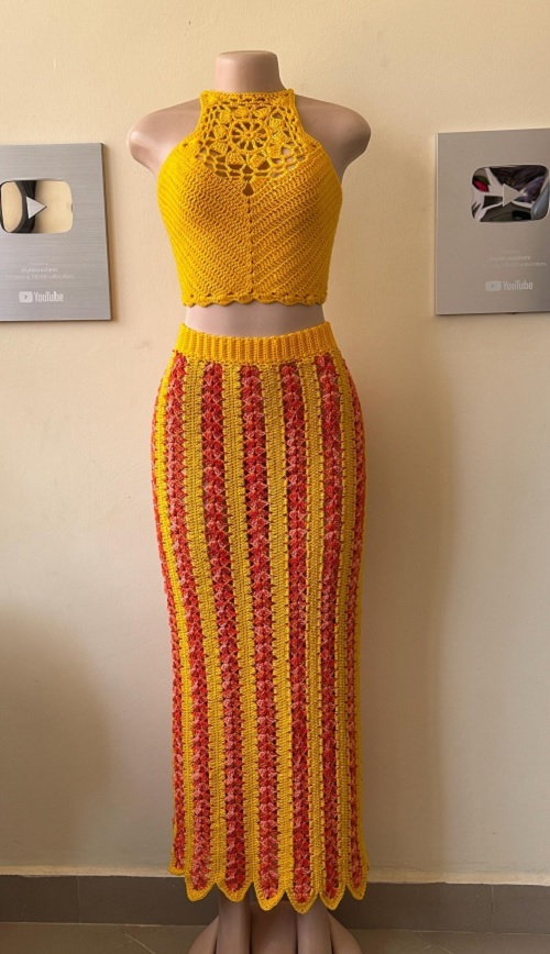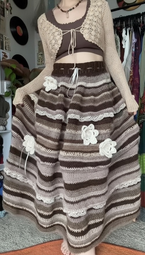 If you love a clean-looking winter bottomwears, the crochet maxi skirt is just what you need! Leah Gordon made it with quite a lot of attention to detail.