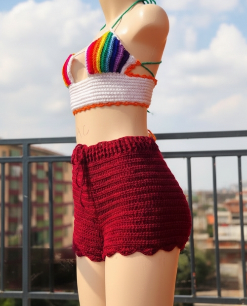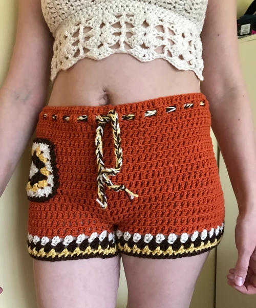 Abby crocheted these custom shorts with a mid-rise fit, extra room around the hips for comfort, and just the right leg length for confident coverage. The added drawstrings keep them perfectly in place.