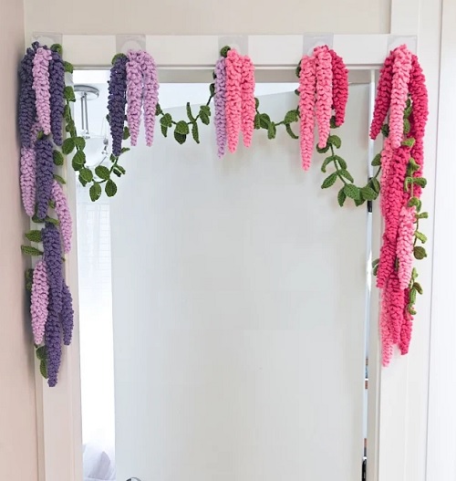 Create custom floral decor pieces with these Crochet Wisteria Door Garland Free Patterns. They are just wow!