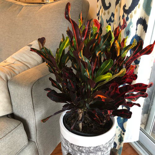 Ideal as a houseplant, this show-stopping Zanzibar croton showcases multi-colored leaves. This plant requires bright indirect light to survive.