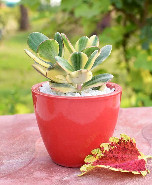 This stunning succulent with maroon stems and fleshy foliage makes it an excellent conversation piece. It can easily tolerate long periods of heat and drought.