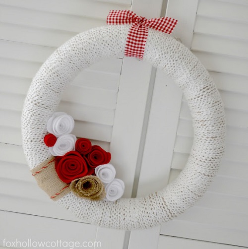 28. Hand Knit Heart Wreath