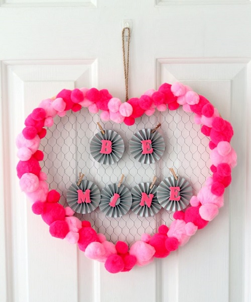 18. DIY Pom-Pom Heart Wreath