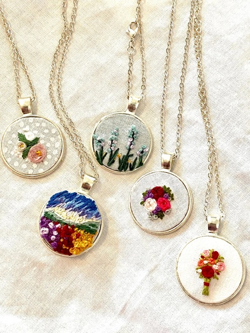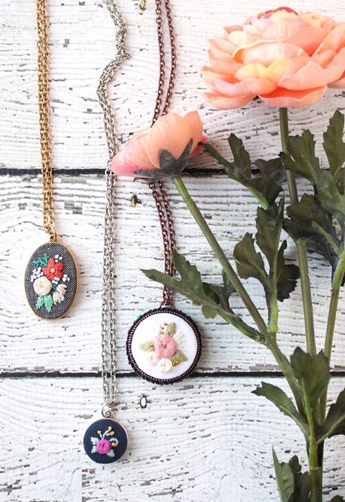 Missy Kate is behind these amazing embroidery pendant. These necklaces make a good option as a handamde jewelry, or a great gift for birthdays or anniversaries.