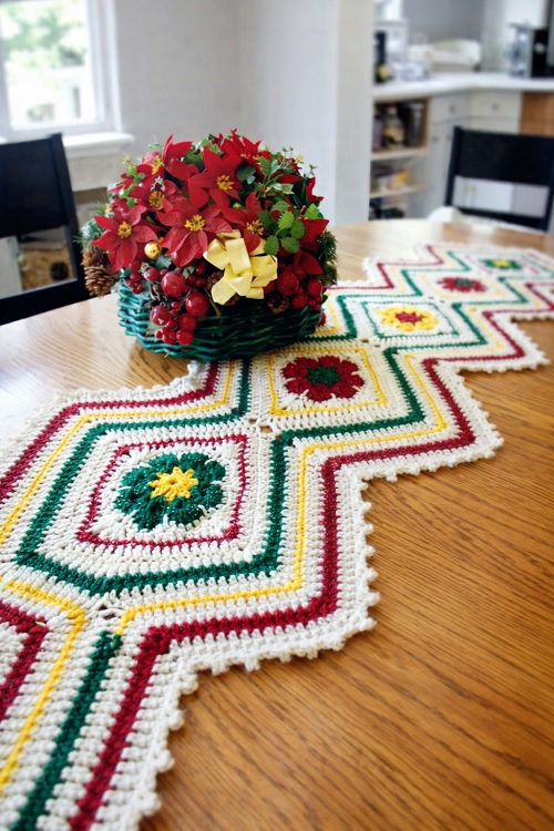 Try this pretty table runner from Pattern-Paradise. It is perfect to decorate your tables during Christmas as the color combination is perfectly match with festive season.Â