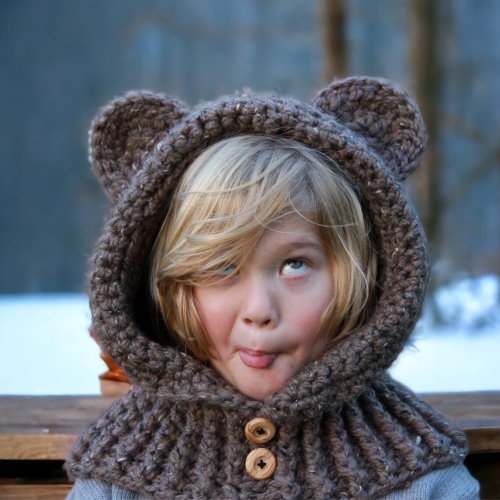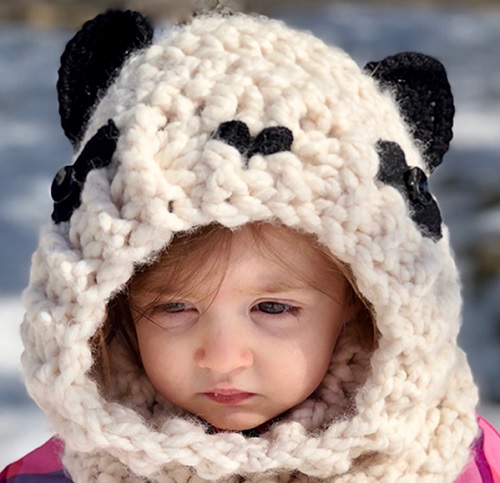 This hooded cowl featuring bear ears will surely become your toddler’s favorite winter wear. Cyprianne is behind this fantastic headgear.