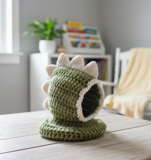 This beautiful dinosaur cowl is created by Jennifer Lynas. The creator uses bulky yarn and 2 hook sizes (7.0mm and 9.0mm) to get this texture. Download the PDF and make one for yourself.