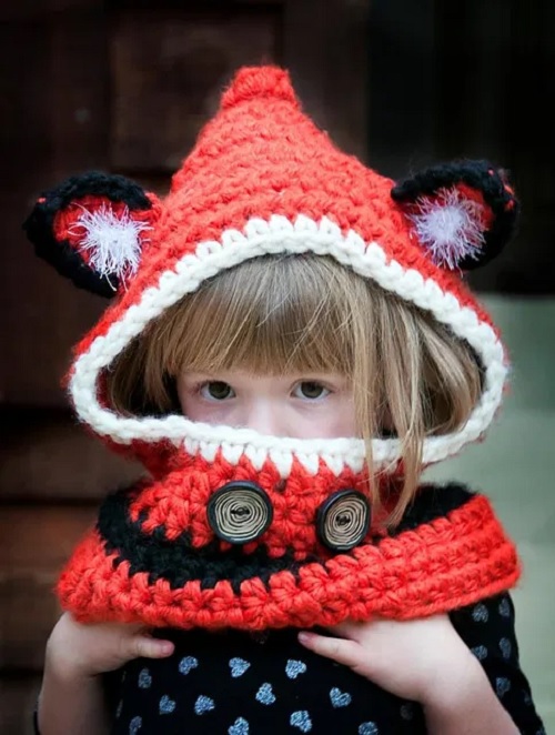 Nittin Ninja is the talented crocheter behind this foxy hooded cowl. All you need to know are the basic stitches, such as ch, sc, hdc, dec, inc, and sl st for this project.