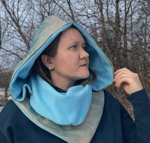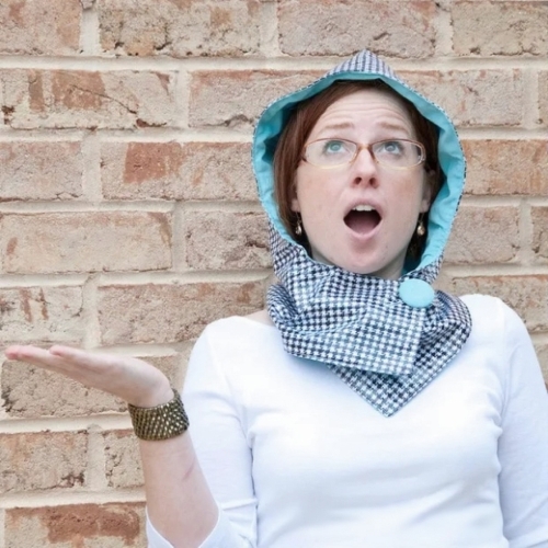 Create your own personalized hooded cowl from Heather Damron. This is perfect to wear at any party to become the center of attraction.