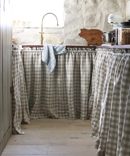 Make your bland kitchen cabinets more aesthetically appealing with these plaid-themed curtains. They are easy to make with the instructions provided at Cami’s blog post.