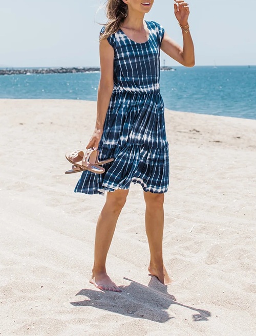 Try your hand at this tie-dye cap sleeve tiered dress by Merrick’s Art. The cap sleeve gives a simple look while the tiered design adds a flowy movement.