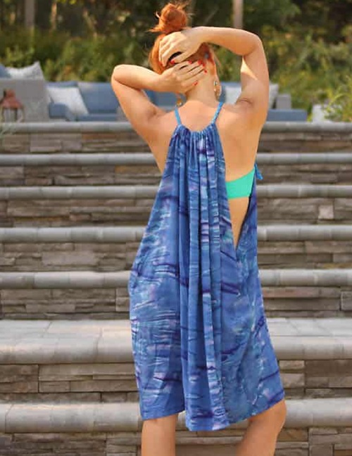 Looking for a quick and comfortable dress for beach days? This easy beach dress sewing pattern by Gina Michele is perfect for dress for warm days.