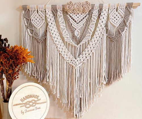 Learn how to make this beautiful wall hanging by Him Macrame. You can use this to decorate your bedroom or drawing room. Watch the video tutorial for more instructions.Â