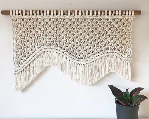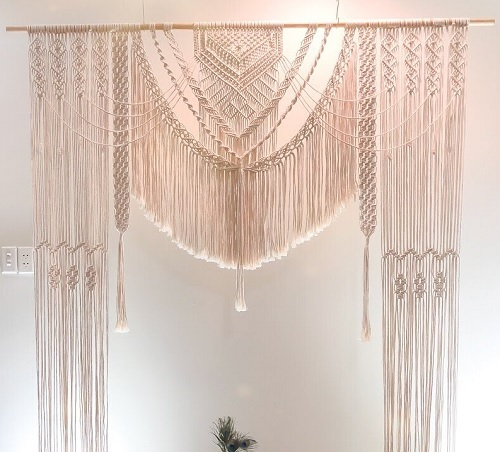 Look at this stunning macrame wedding backdrop that can be a perfect handmade gift for any housewarming party or event. It will showcase your creativity and knitting skills among others. Shared by Him Macrame.Â