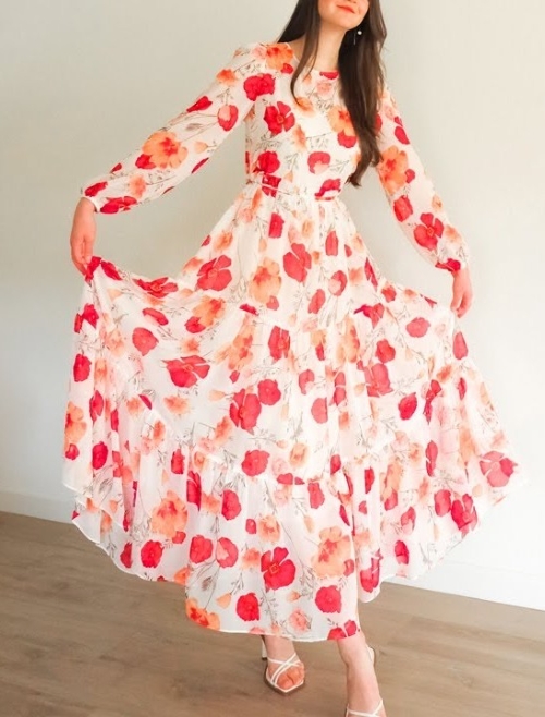 2. DIY Maxi Chiffon Dress with Tiered Ruffle Skirt