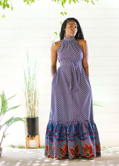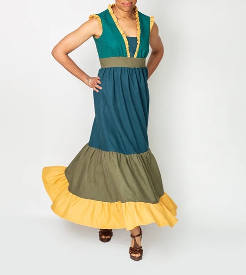 Try this vibrant, colored ruffle dress from Izzosew Studio. This lovely dress may seem simple, but it actually features 24 different combinations.