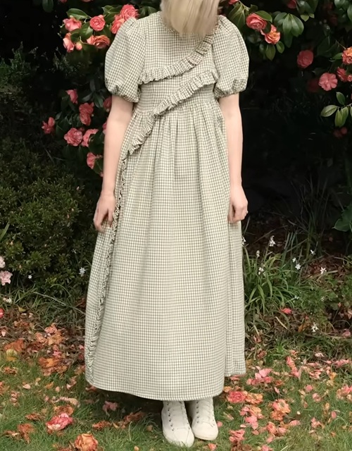 You will definitely look pretty in this beautiful dress by Rosery Apparel. It stands out in the list with puff sleeves and ruffles on the front.