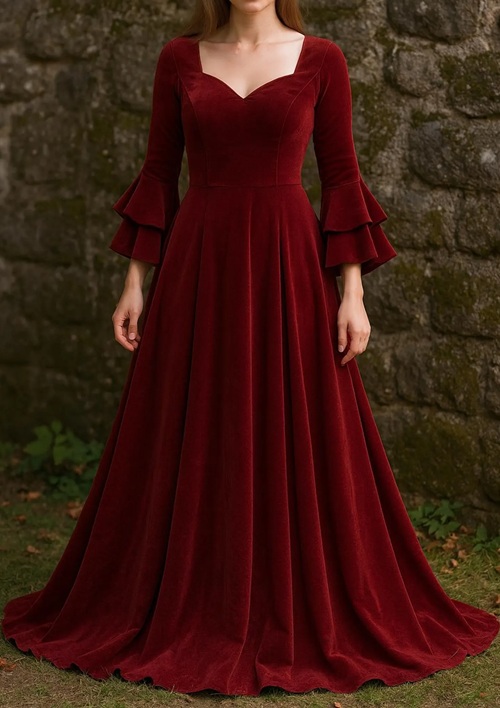 This red colored gown will definitely steal the attention at any show. It will give you a full vintage princess vibe. Check Etsy for more detials.