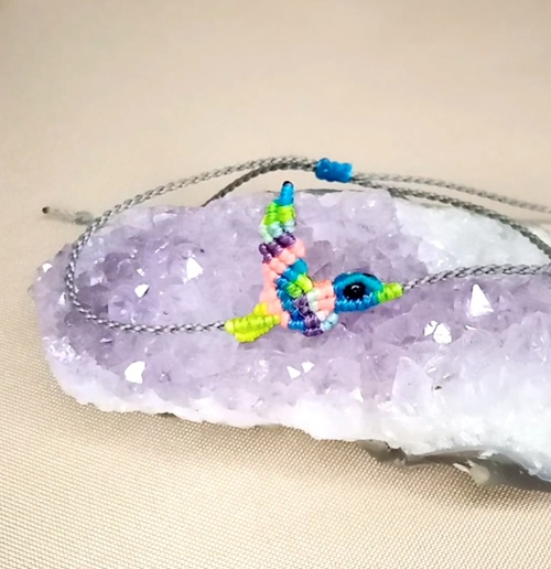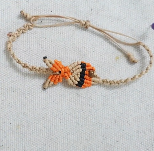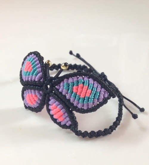 Macrame Tita has knotted a beautiful bracelet featuring a butterfly shape in the center. It’s a lovely choice for anyone who likes bright and creative animal-themed jewelry.