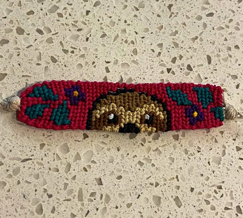 This bracelet features a beautiful woven sloth design, making it a standout piece. Check out TheGringaHippie, who has designed this unique hand accessory.