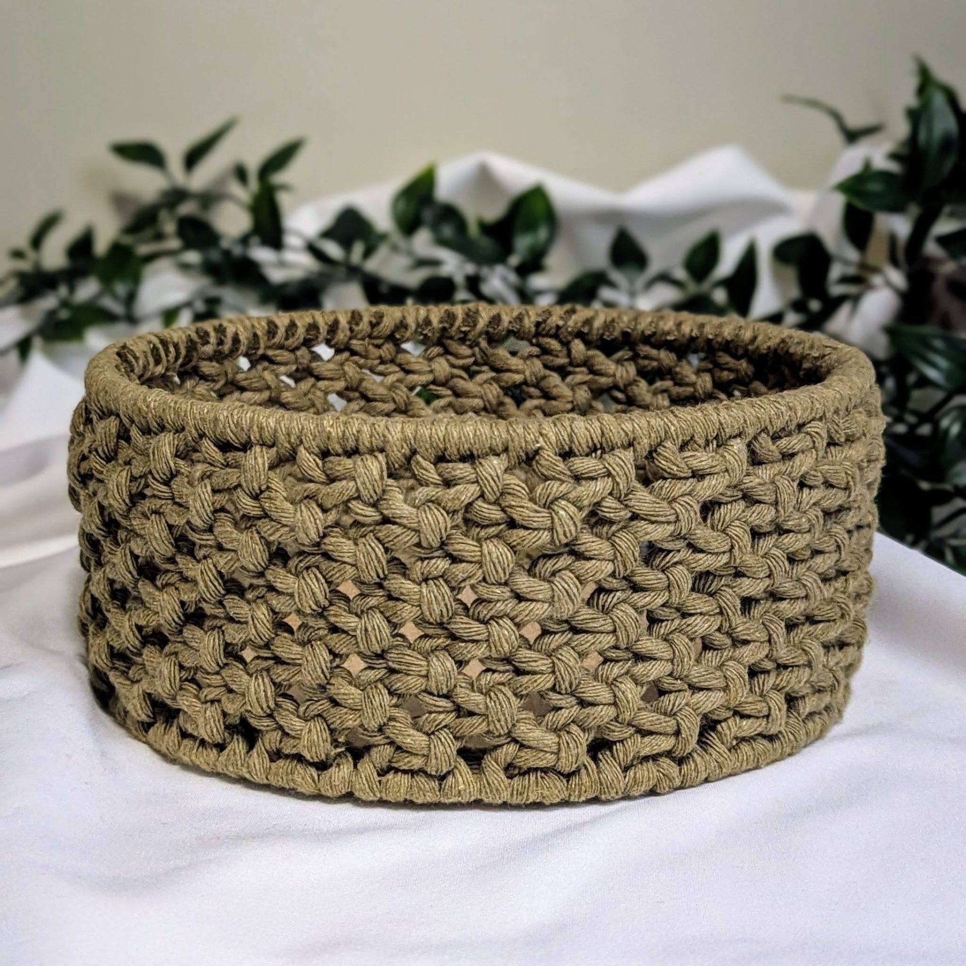 Show off your macramé talent among friends with this intricately knotted basket by GreysMade Macramé. The fold-over edge and a neat bottom make it stand out!Â