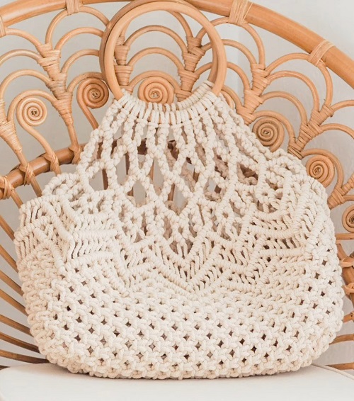 Look at this beautiful bag with bamboo handles from EWA Macrame CRETE. The creator uses techniques such as the double half-hitch and the square knot. It has an easy-to-follow tutorial, so anyone can try this.
