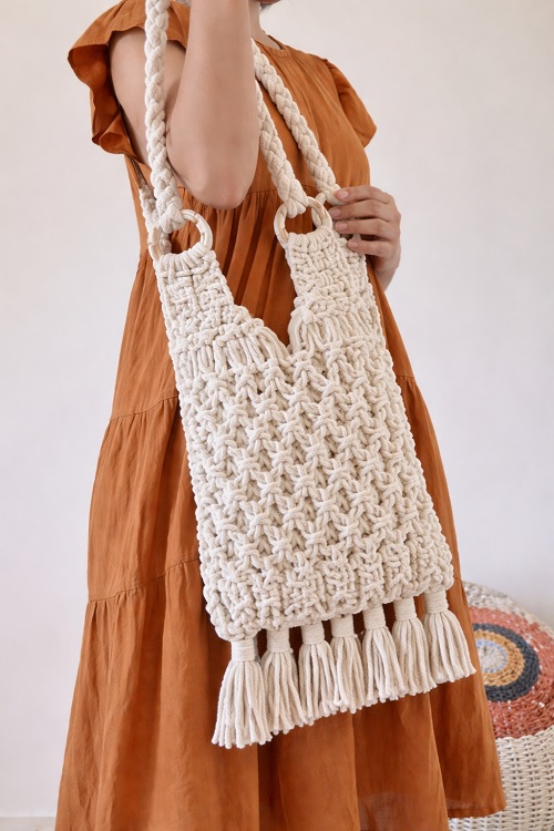Try this stylish bag designed by Macrame with Flora. It is very spacious so you can put all your necessary items together. Check out the video for more instructions.