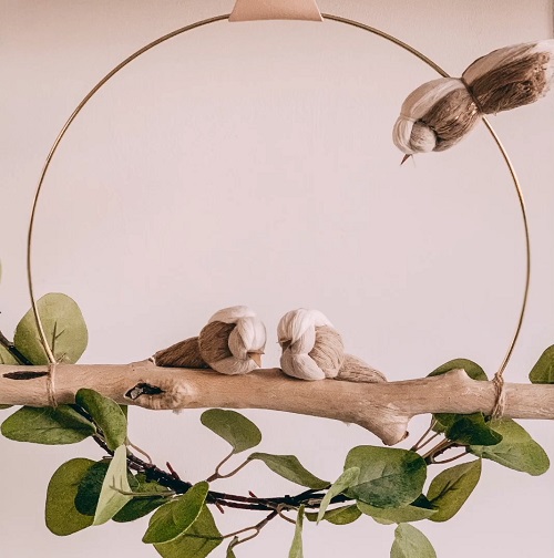 Show off your knotting talent by decorating your bland wall with this beautiful macrame bird display by DIY Macrame World. It has three hand-knotted songbirds sitting on a branch.