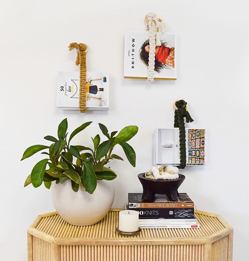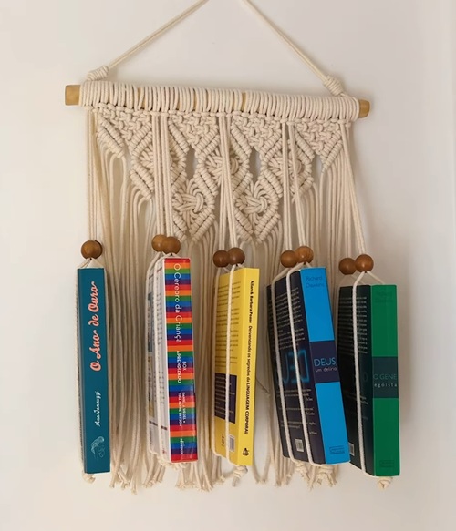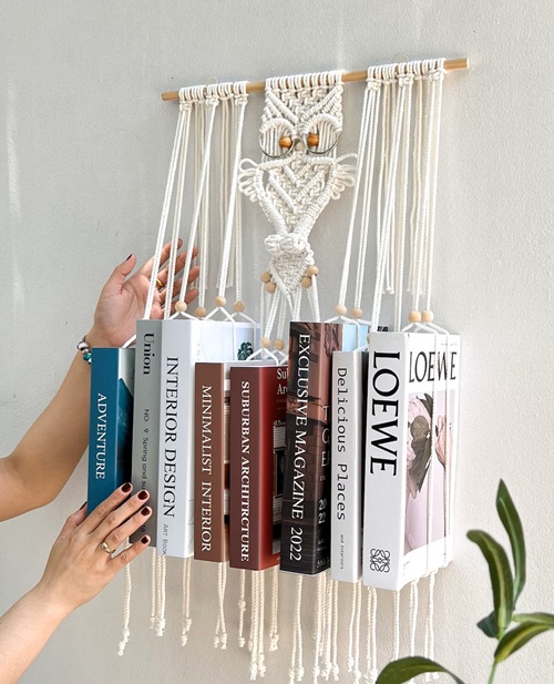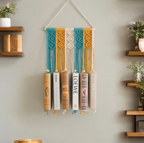 Try this amazingly knotted book holder from Ganxxet. The intricate stitches and unique design are the highlights. You can choose any color that will match your walls.