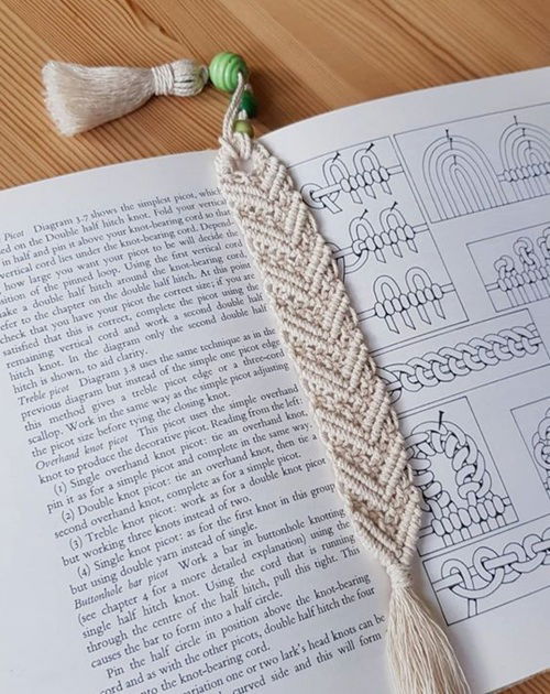 Its sleek body fits easily between the pages, and the tassel at the ends makes your reading less cumbersome. Macrame School is behind this pattern.