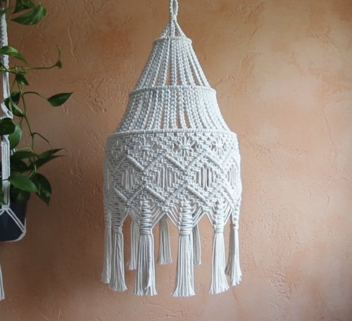 Designed by Sasha MACRAMESSAGE, this bohemian light fixture has a cylindrical shape with diamond knotwork. It measures approximately 48cm / 18.9 inches.